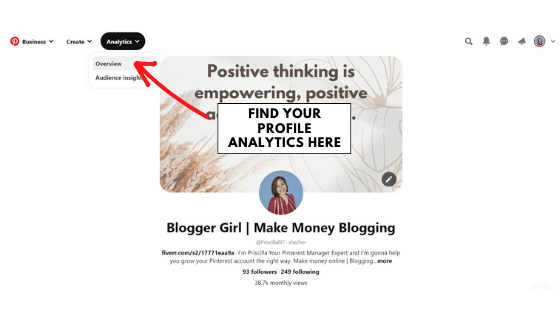 You’ll find your Pinterest analytics in the top left corner of your home feed.